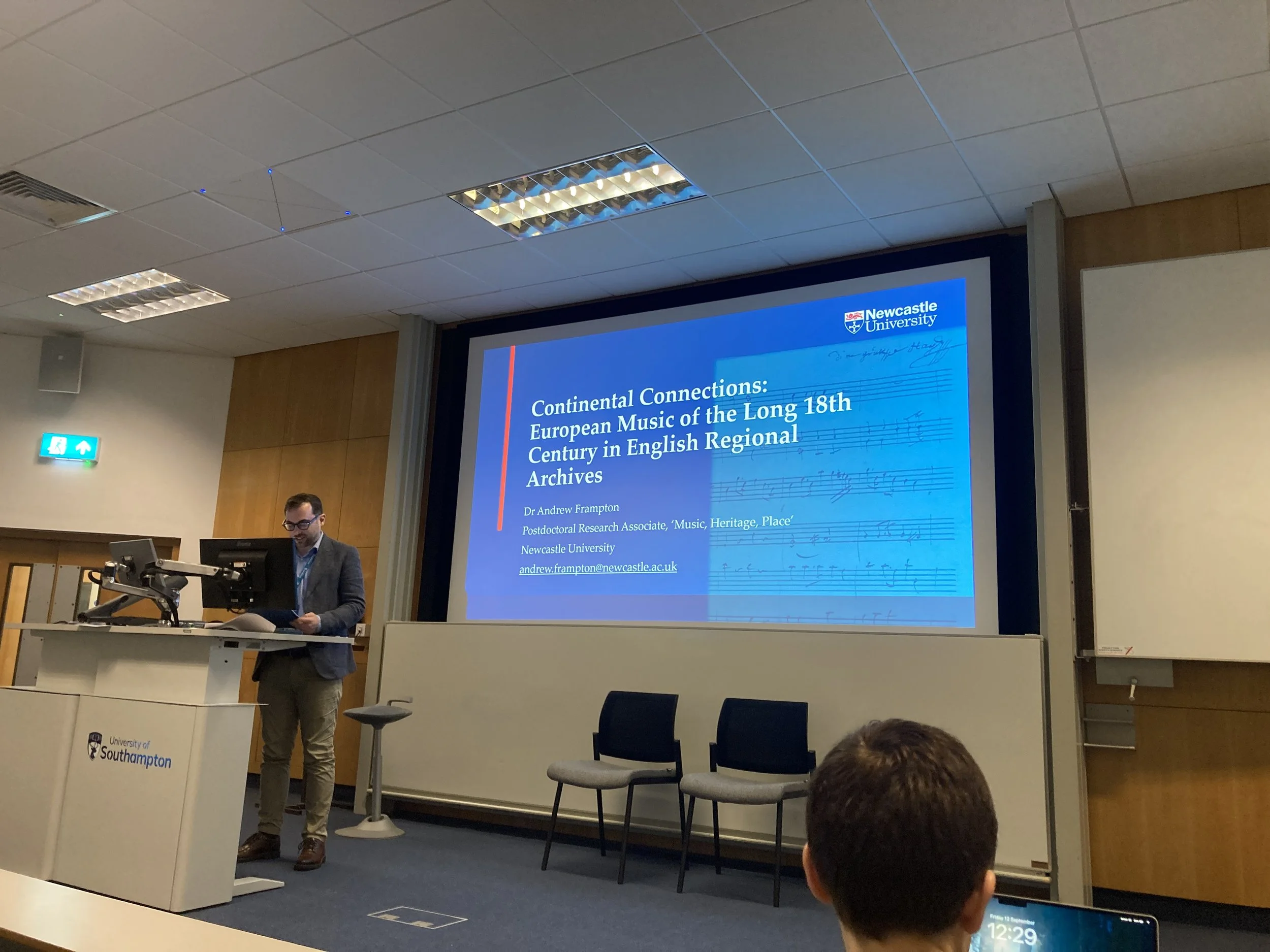 Andrew presenting in Southampton on continental music in house libraries of rural 18th-century English gentry